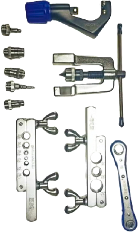 - The kit typically includes a flaring tool for creating flared edges, and a swaging tool for creating swaged edges